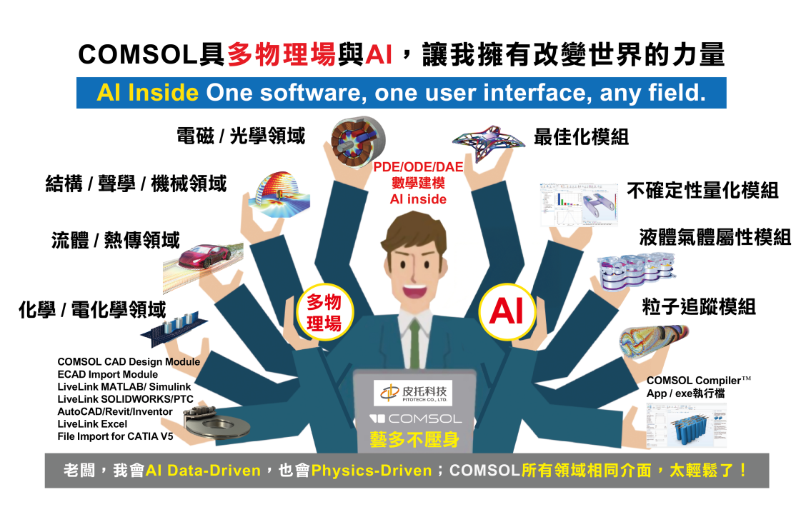 COMSOL is the only CAE software in the world that combines both multiphysics-driven and AI data-driven approaches within a single interface.
